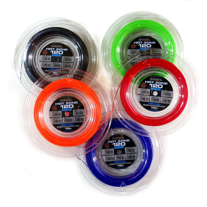 The Karakal Hot Zone Braided 120 is a Hi Tensile multifilament core wrapped squash string with Braided outer twist response filaments that deliver an excellent combination of Power and Control.