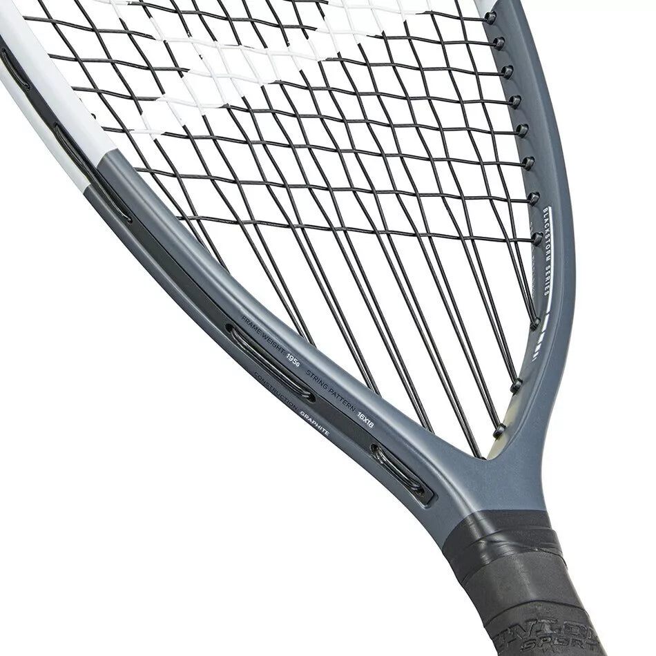 The Blackstorm Ti Rage is a powerful racquetball racquet due to the larger frame and headlight balance. This Dunlop racquet offers excellent value for players with a solid intermediate frame. This Dunlop Blackstorm Ti racquetball racquet provides substantially more power thanks to a larger sweet spot, whereas the head light balance ensures more agility, and smoother handling. The frame of the racquetball racquet weighs 195g.