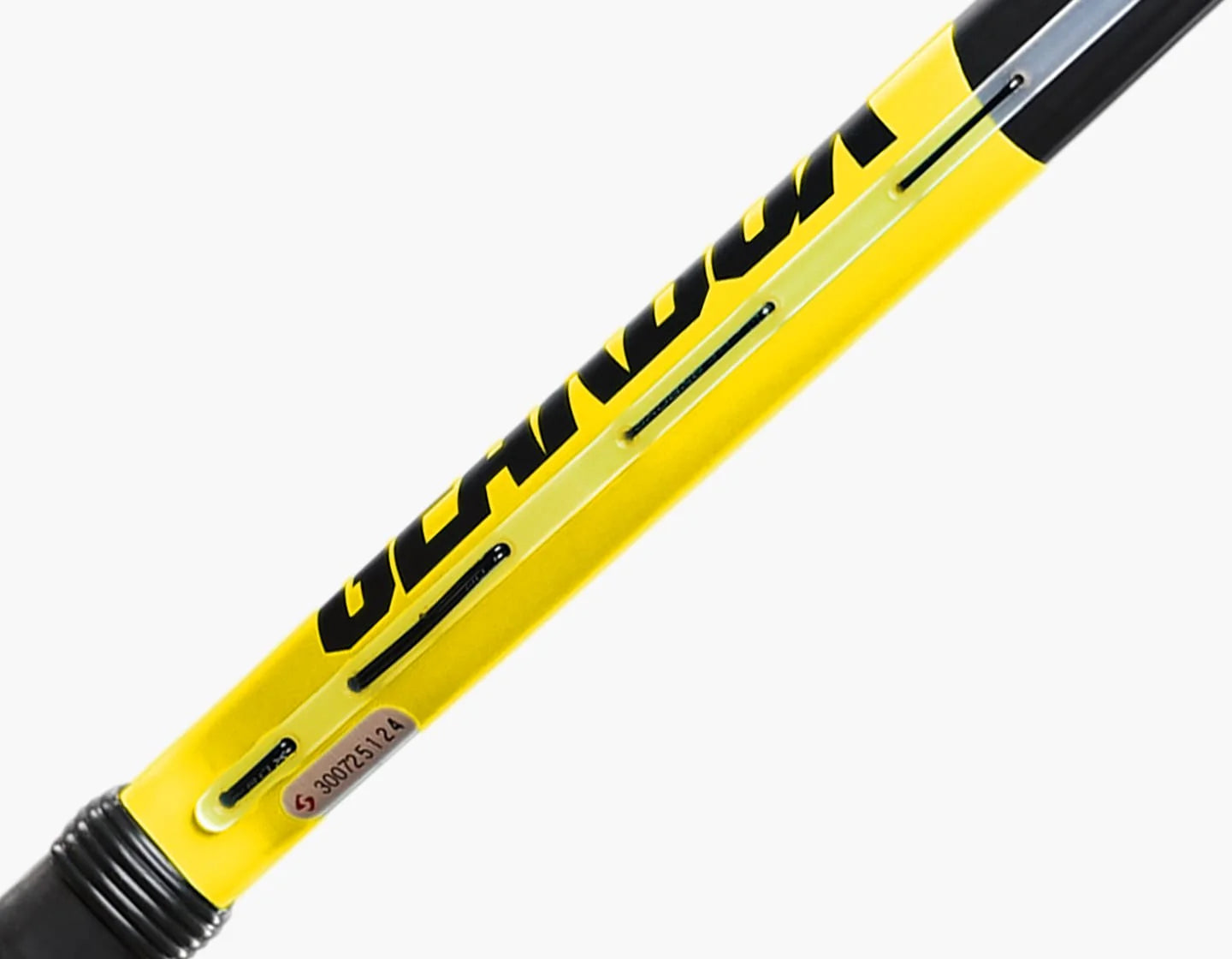 The GX1 represents the pinnacle of innovation, showcasing Gearbox’s patented technologies working in perfect harmony to maximize power output, provide effortless control, and ensure exceptional durability. Gearbox’s patented Solid Frame Technology and Concave frame shape offer exceptional movement to the string bed to boost power and deliver an extra-large, forgiving sweet spot.
