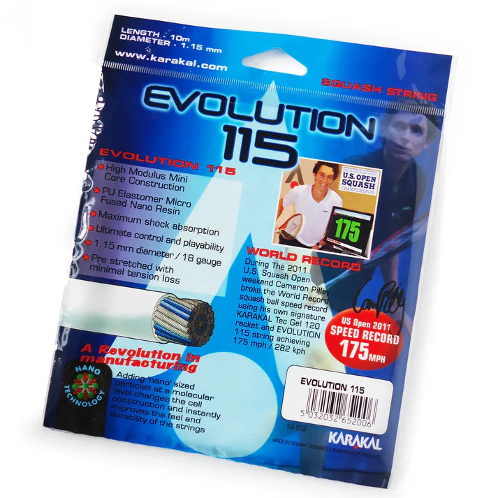 During the 2011 US open Cameron Pilley broke the record for the fastest squash ball ever hit, at an amazing 175mph using his Karakal Tec Gel 120 racket strung with Karakal Evolution 115 string.